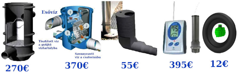 Kiegészítő felszerelés: szivattyúház és kerti készlet, szűrőkészlet, tömítések, vízszintmérők. További szolgáltatások: műszaki tanácsadás . Előnyök: Kiváló kidolgozás (minőségi polimer anyagok, falvastagság 8-14 mm, kiváló statika), 100% vízálló (tartály egy darabból), hosszú élettartam, könnyű és olcsó telepítés, komplett megoldás, szlovén gyártó, gyors szállítás és szakmai támogatás.
