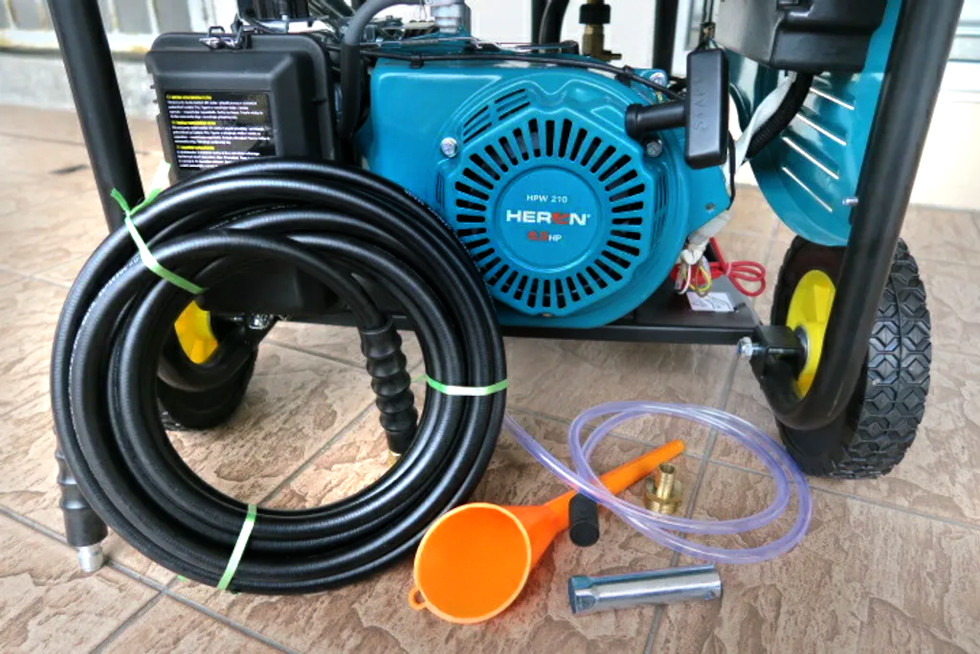 A 8 m hosszú tömlő segítségével a készüléktől távol is lehet dolgozni (pl. nagyobb magasságokban vagy akár egy teherautó mosása közben).
