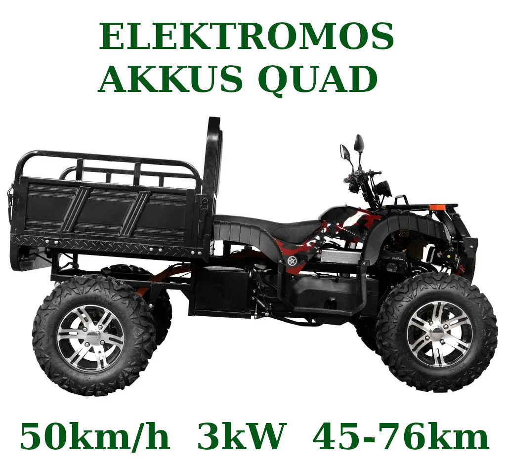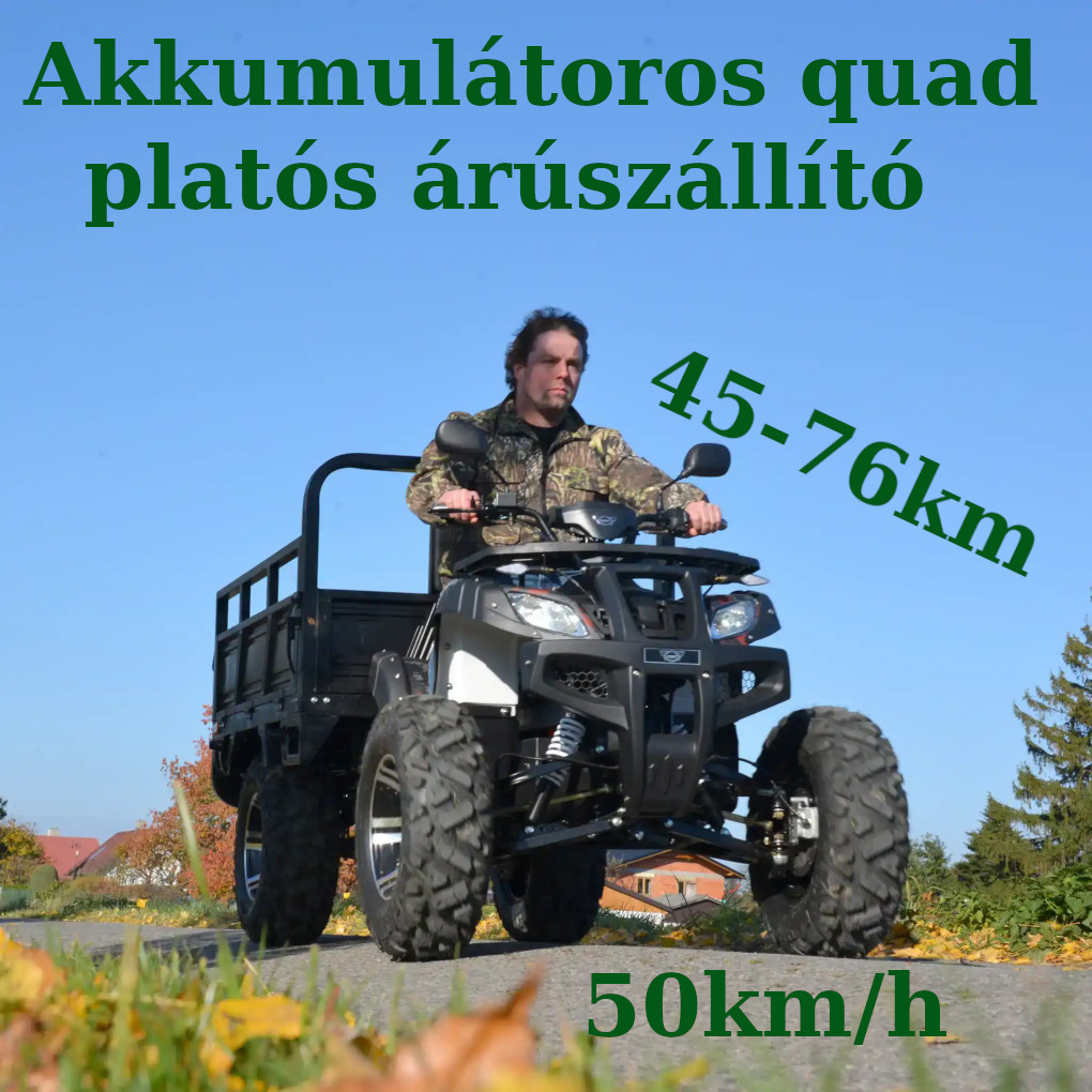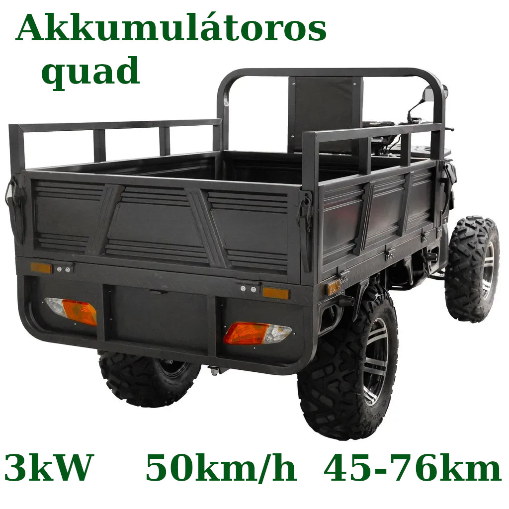Nagy teljesítményű villanymotor és hosszú élettartamú akkumulátor ,tágas plató a rakományok szállítására , nagy teherbírás és akár 30°-os emelkedőképesség ,biztonságos tárcsafékek ,tartós gumiabroncsok változatos terepre ! A quad elektromos motorral működik, amely számos kulcsfontosságú előnnyel rendelkezik. A belső égésű motorokhoz képest csendes, nem bocsát ki kipufogógázt, és alacsonyabbak az üzemeltetési költségei. Ezáltal a quad ideális a természetben és az érzékeny területeken végzett munkához, ahol a környezetbarátság és az alacsony zajszint kiemelkedő fontosságú.
