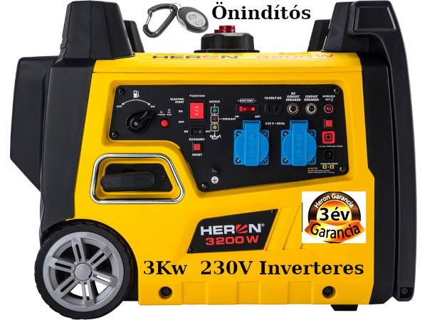 3kW -os benzinmotoros áramfejlesztő, távszabályzós indítóval és önidítóval 3,0 kVA, 230V, 1 fázisú, inverteres aggregátor.