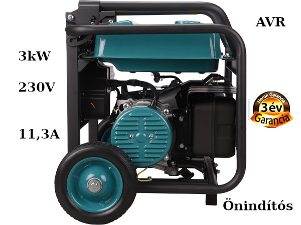 Teljesítmény ::3000 VA . Indítás módja kézi / elektromos .